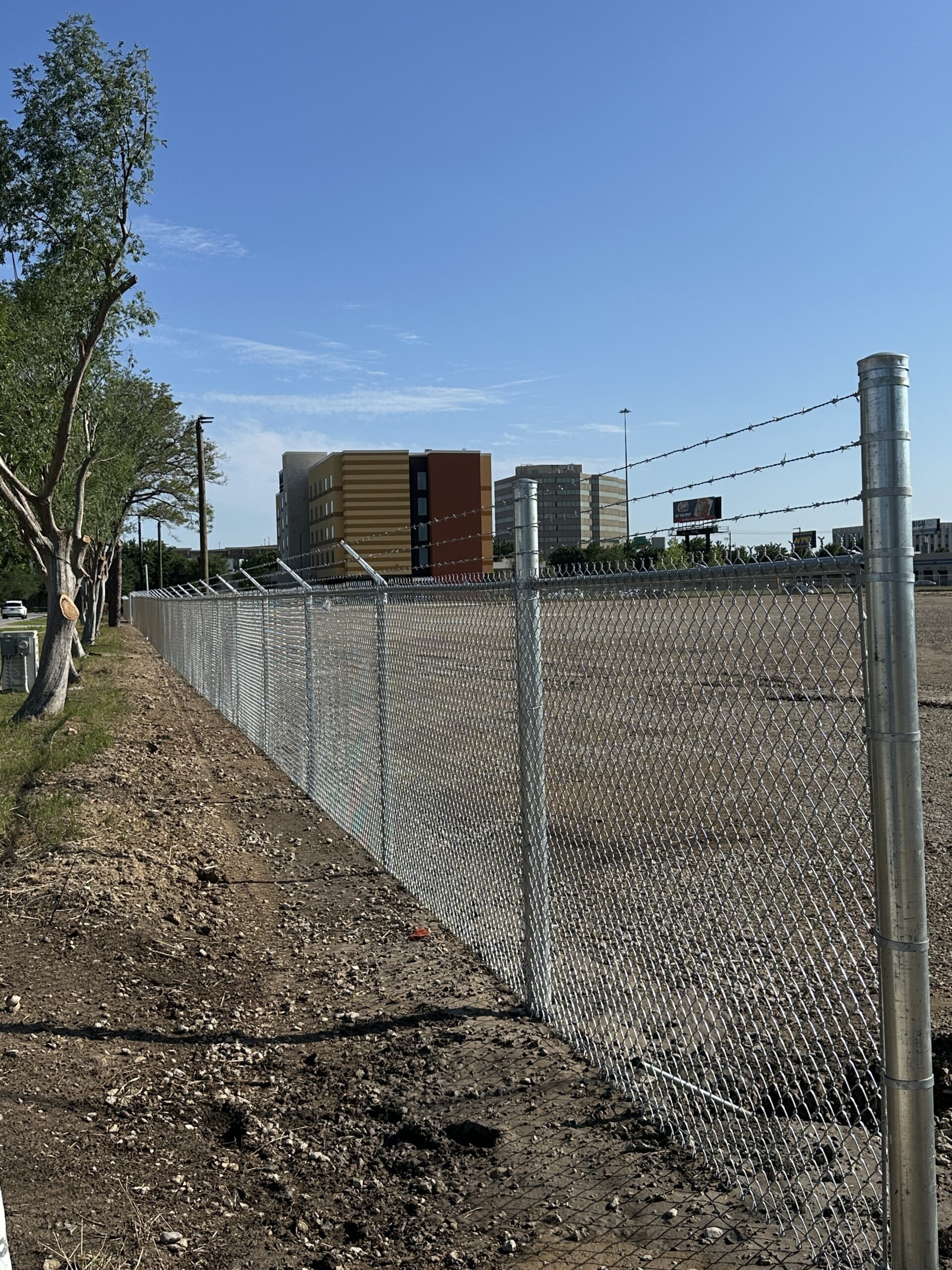 Looking to combine the best structural integrity for a fence, and visual appeal? This fence line immediately enhances the aesthetic view of a commercial property, while the steel posts used in its framing are sure to provide lasting strength for decades to come.