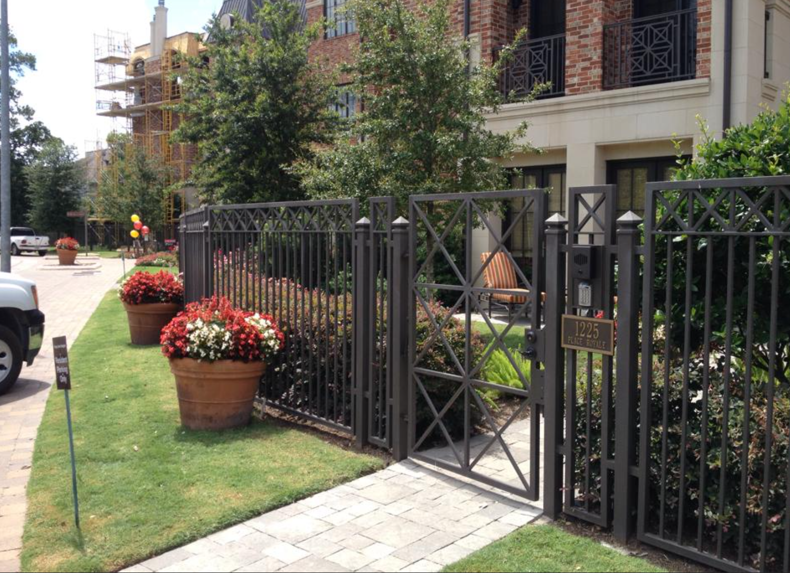 This ornamental perimeter fence was designed in consultation with a local neighborhood Home Owners Association in the Memorial Villages area. The final project turned out beautiful and is being double checked at the job’s completion by our dedicated operations manager.